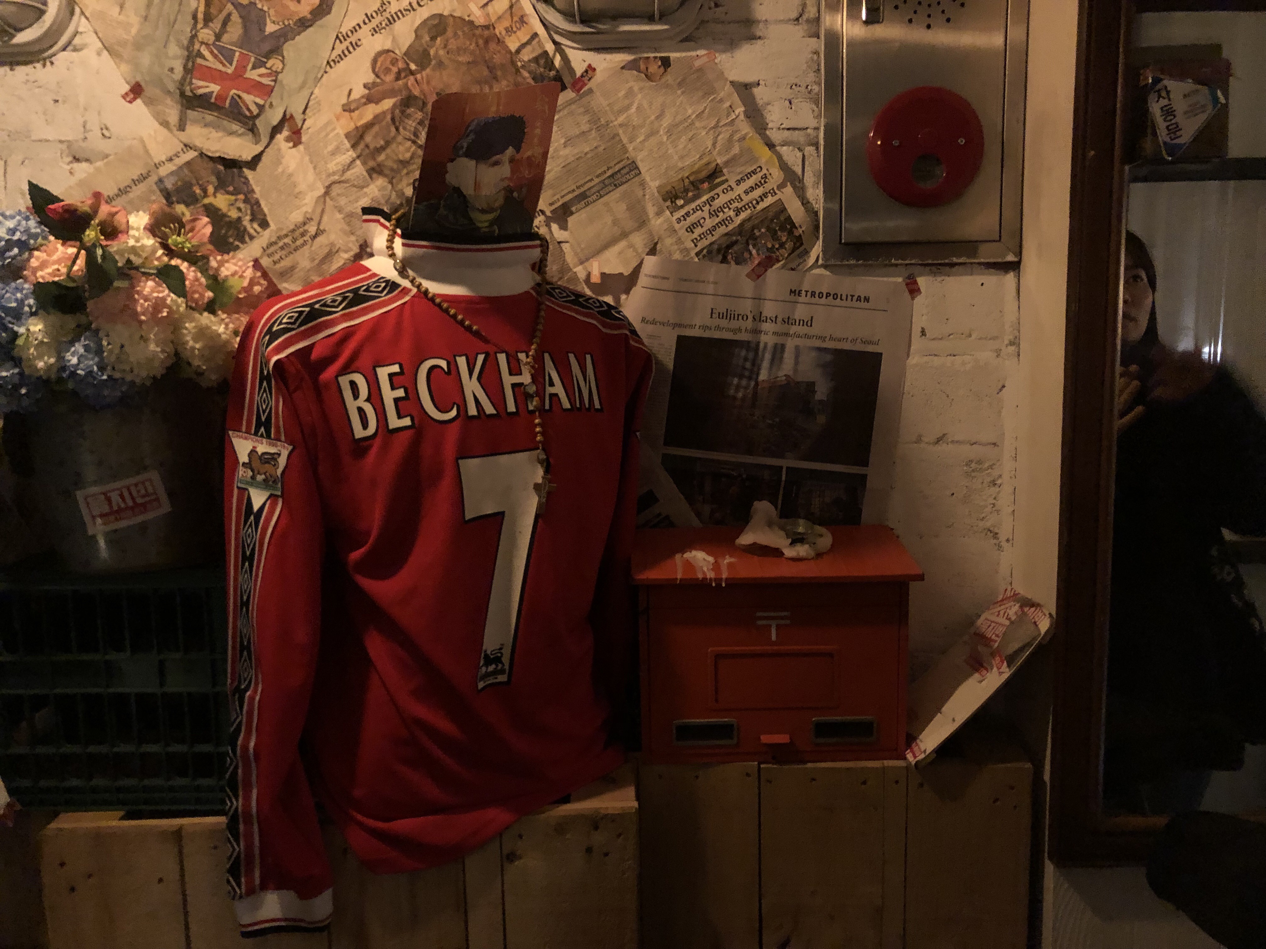 카페 들어가는 문 앞에는 여러 가지 소품들을 조합하여 장식을 해놓은 것이 있었는데, 베컴 유니폼에 반고흐 자화상이 붙어있더라고요. 뜬금없는 조합이긴 하지만 보기 좋은 모습이니 해놓으셨겠죠? 카페 사장님도 제 남자친구처럼 베컴을 좋아하시나 봅니다.