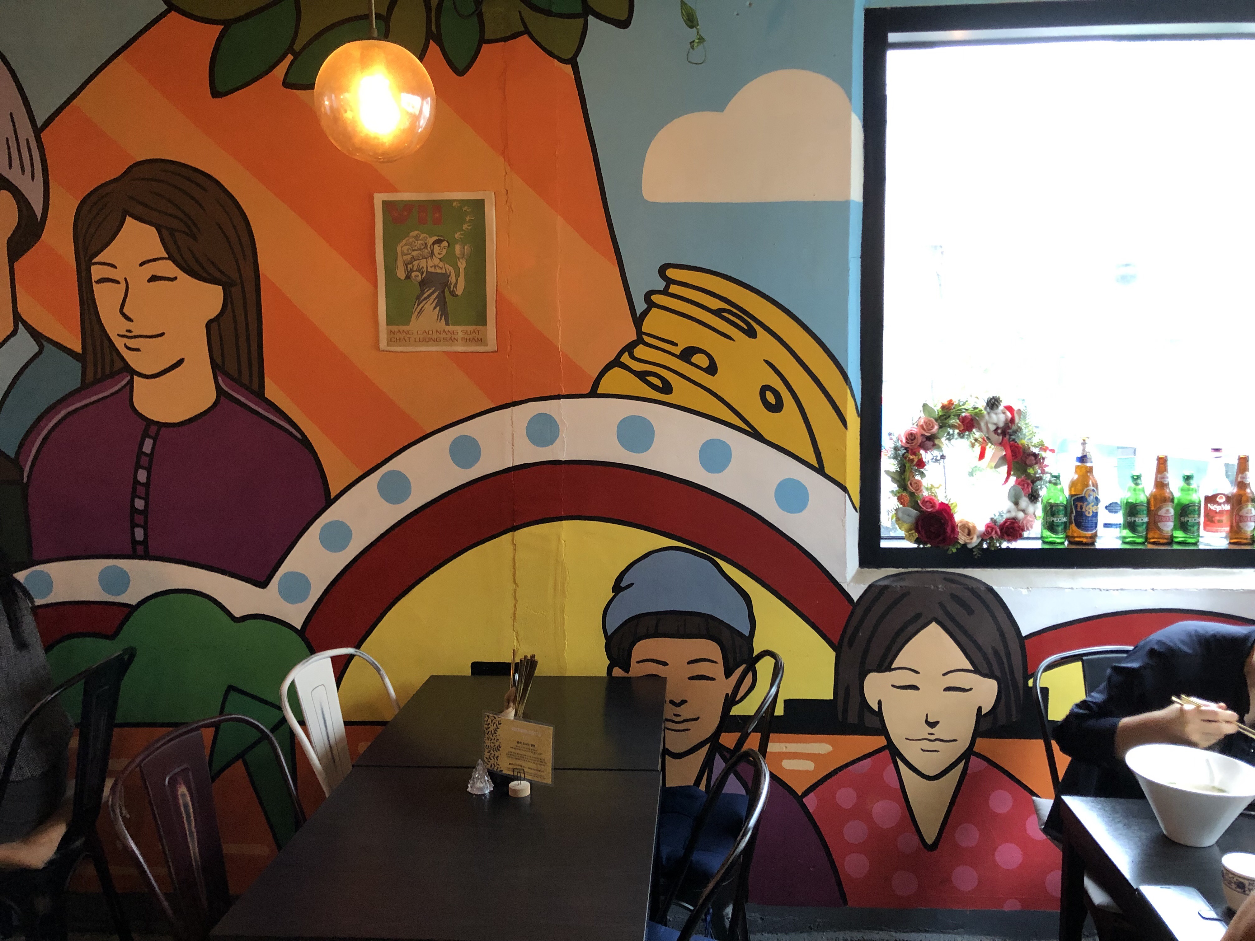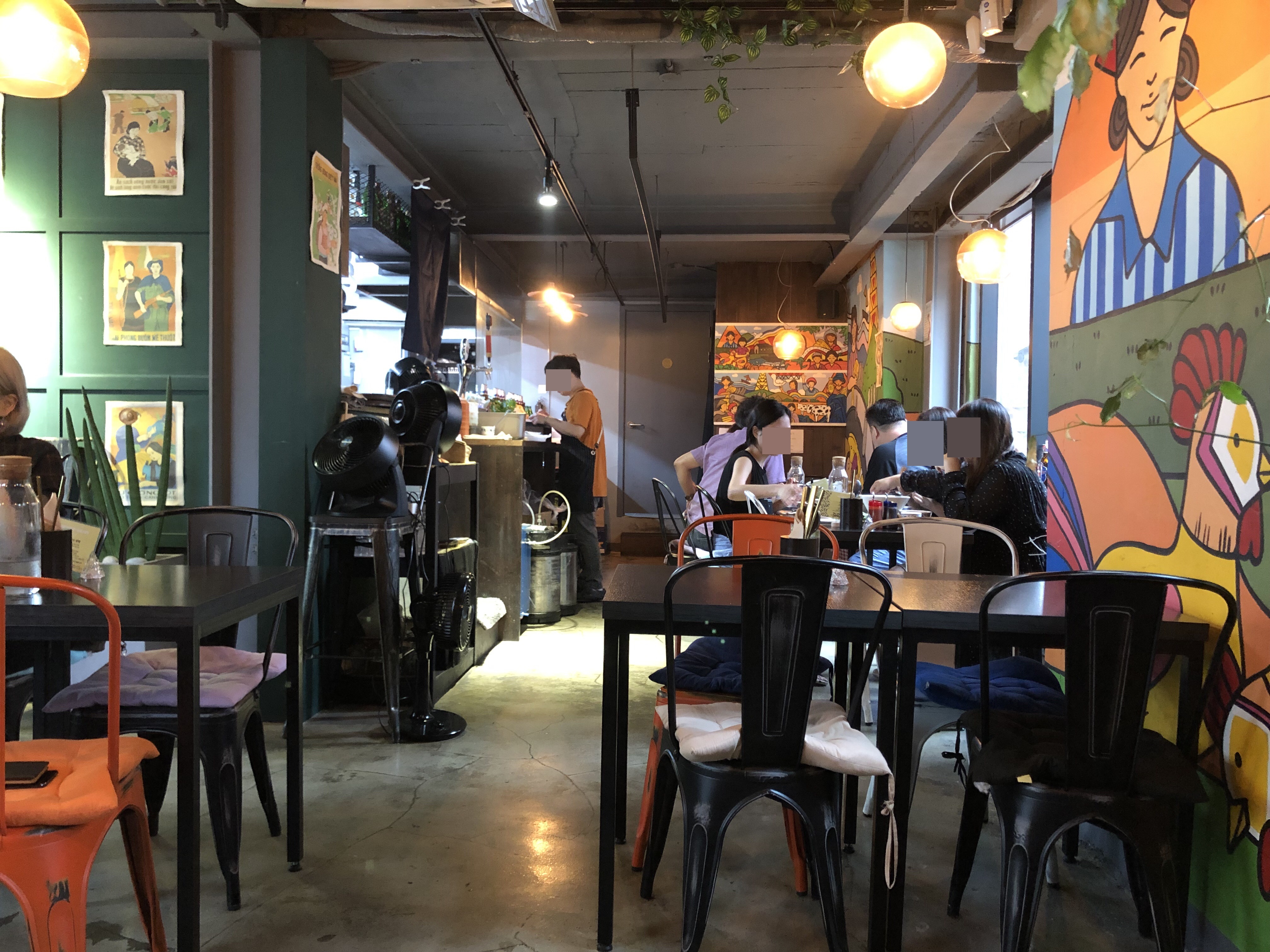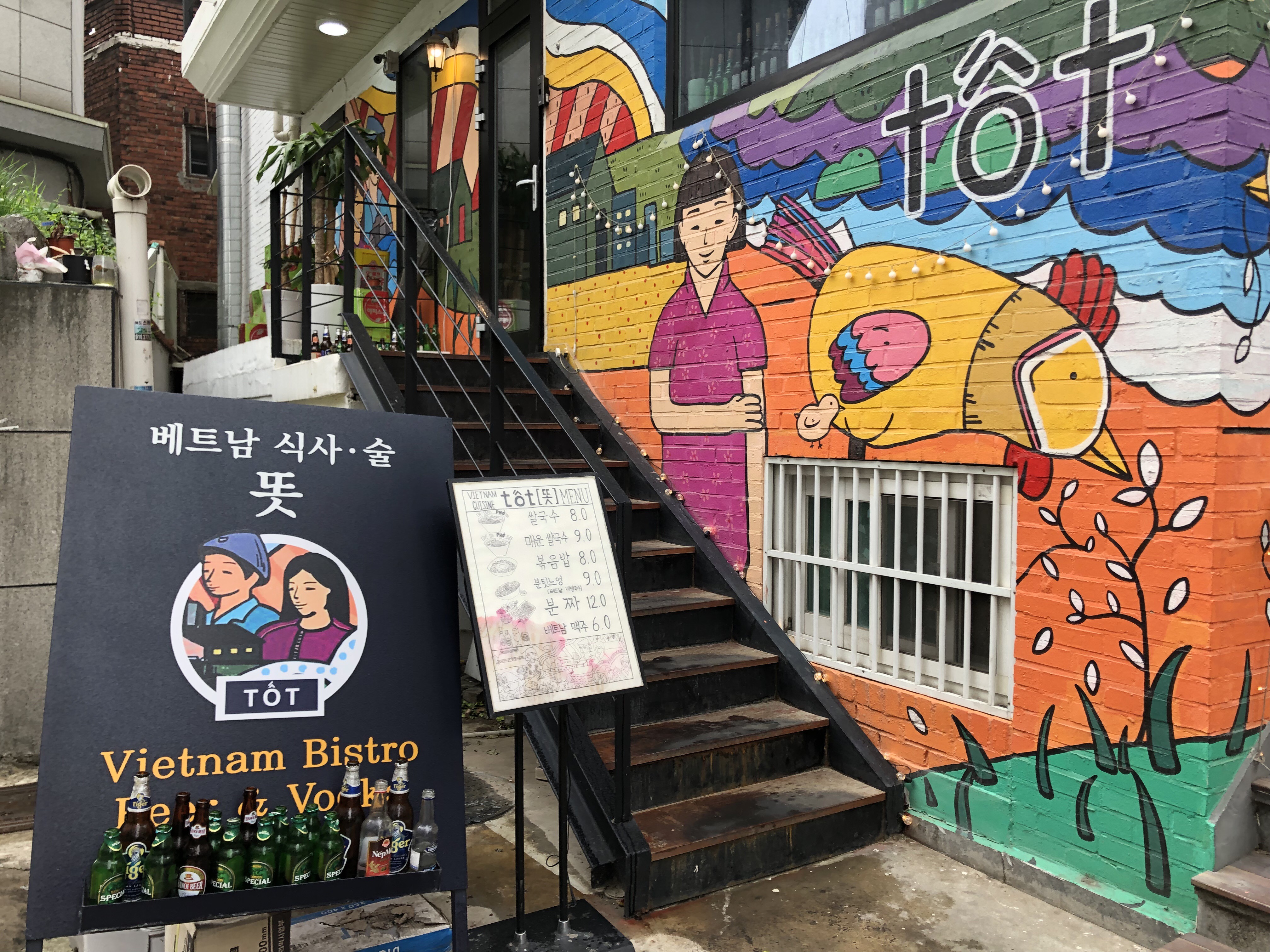 지난번 홍대에서 친구를 만났을 때, 원래 먹으려 했던 음식이 있었는데 그 음식점이 없어진 거예요. 배가 고픈 상태였어서 홍대입구역 4번 출구 주변에 근처를 둘러보는데 알록달록한 색의 건물 페인팅이 눈에 띄는 곳이 있더라고요. 베트남 음식점이라고 하는데, 평소 쌀국수를 좋아하기도 했고 친구도 좋을 것 같다고 해서 들어가보았답니다.