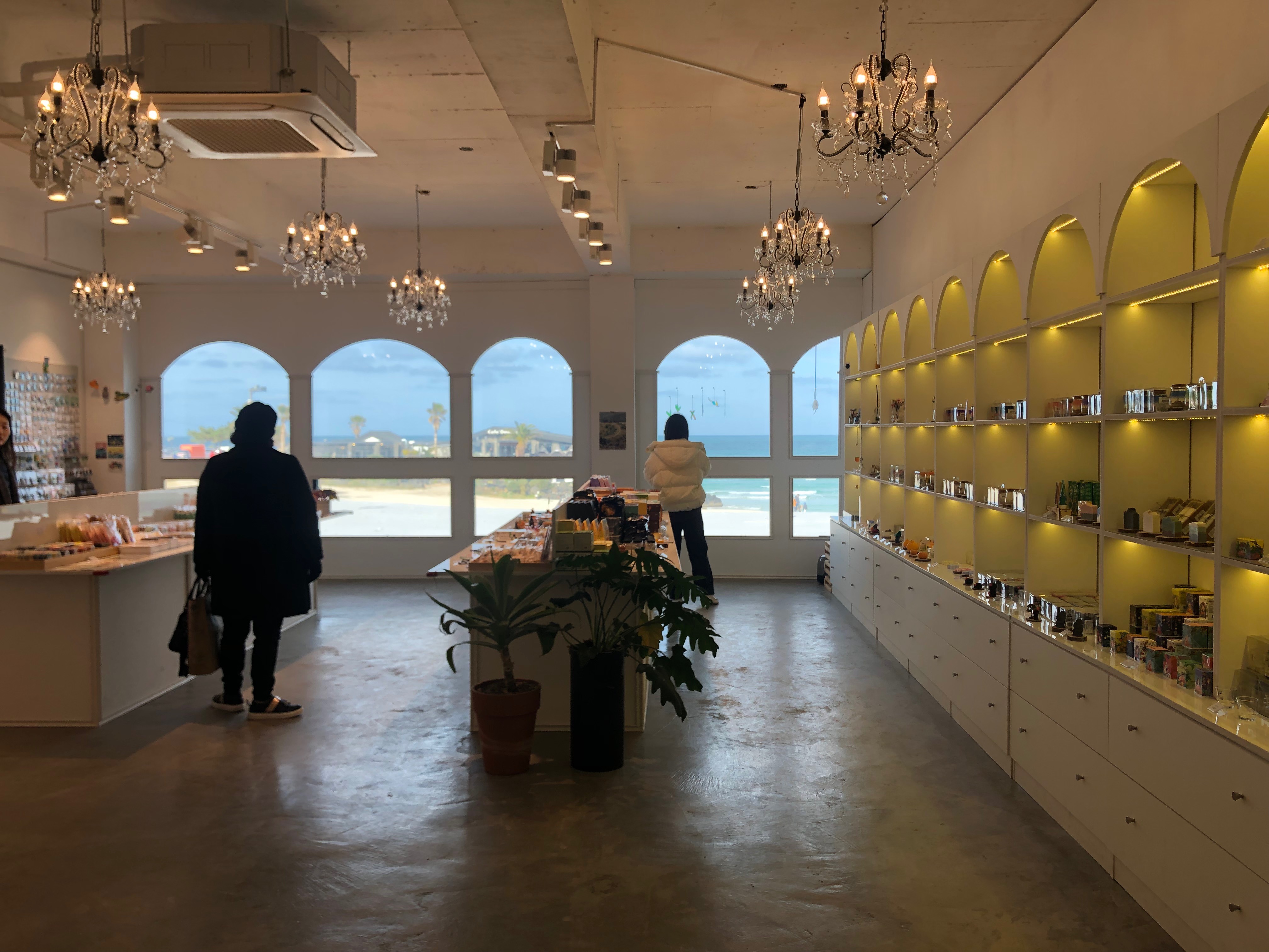 기념품샵이라고 해서 크게 기대하고 가지 않았는데, 내부가 너무 예쁜 거예요. 대충 기념품을 쌓아두고 파는 곳이 아니어서 좋았고, 인테리어나 조명이나 상품 디스플레이 등등 하나하나 신경 쓴 것이 보여서 더욱 예쁘다고 생각한 것 같아요. 특히, 창이 특이해서 창으로 보이는 바다를 더욱 멋스럽게 볼 수 있어서 좋았어요.