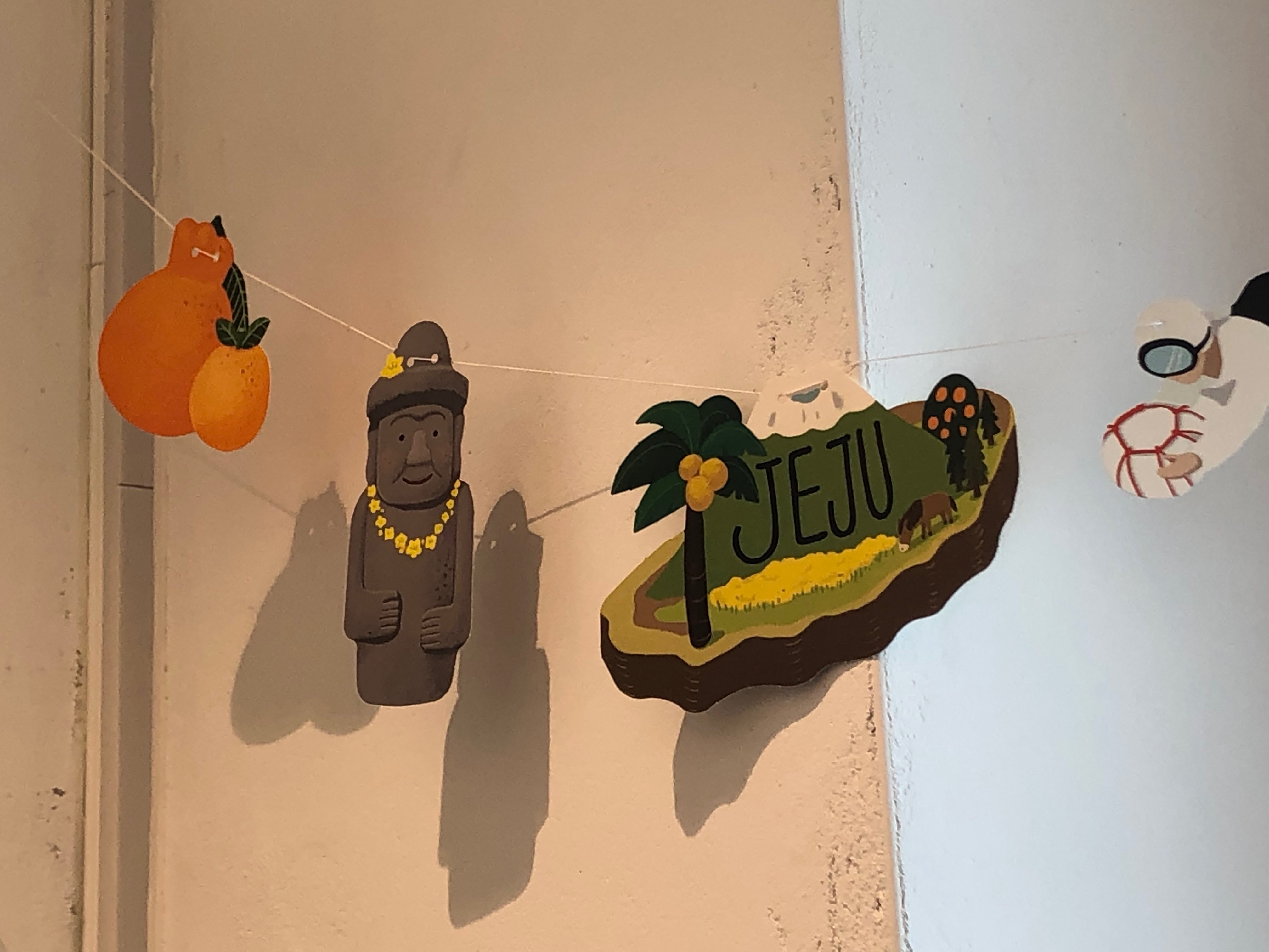 한라봉, 돌하르방, 한라산, 해녀 그림이 있는 가랜드. 집에서도 제주도 분위기를 내거나 떠올리고 싶을 때 걸어두면 참 좋겠죠.