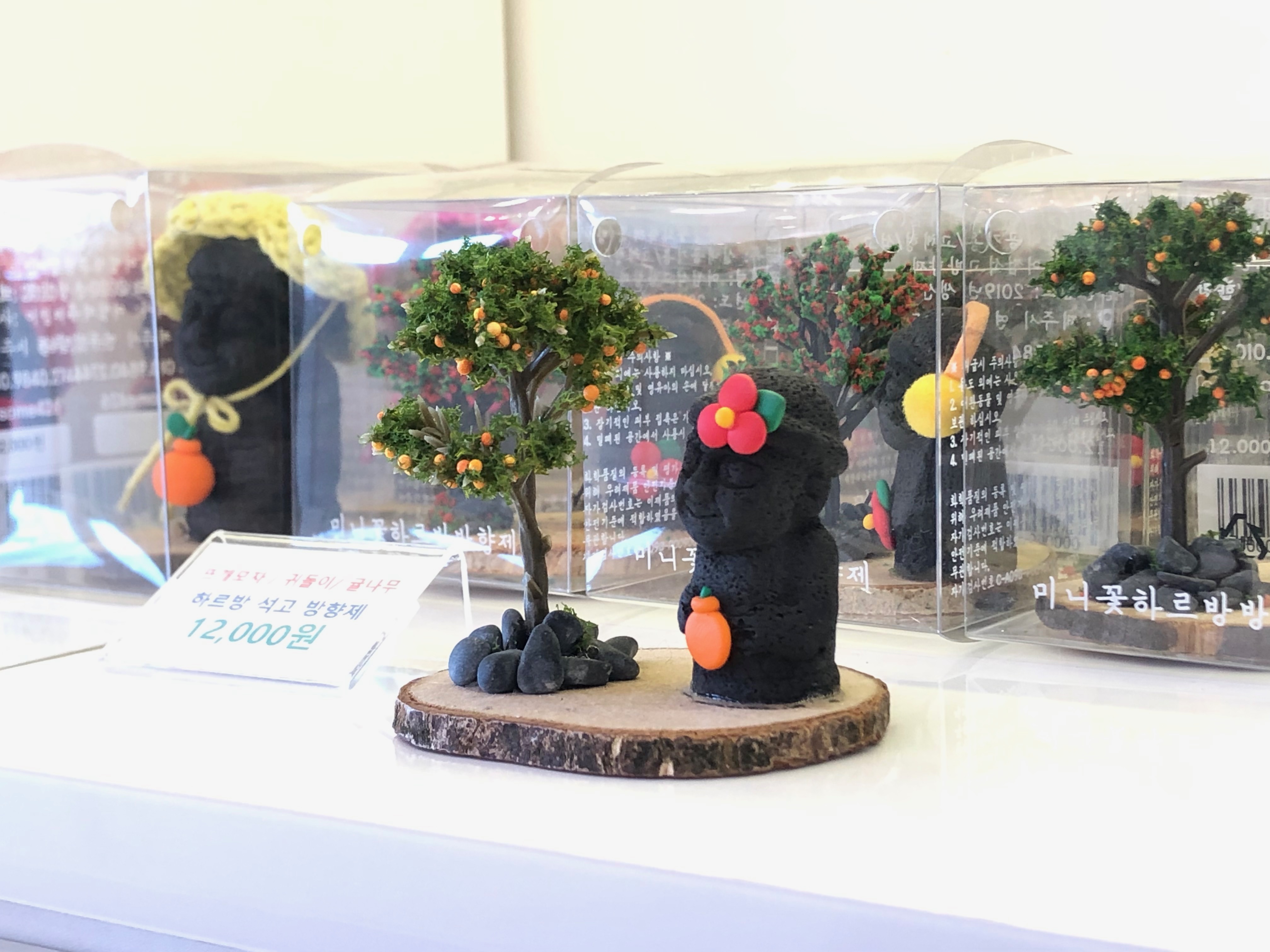 돌하르방 모양의 석고방향제도 있었어요. 귀여운 동백꽃 머리핀을 달고 한라봉을 들고 있는 모습이 정말 귀여웠어요. 원래 선물은 내돈 주고 사기엔 아깝지만 받으면 기분 좋은 그런 것들이니, 이런 것들도 꽤 괜찮은 선물이 되지 않을까 싶어요.