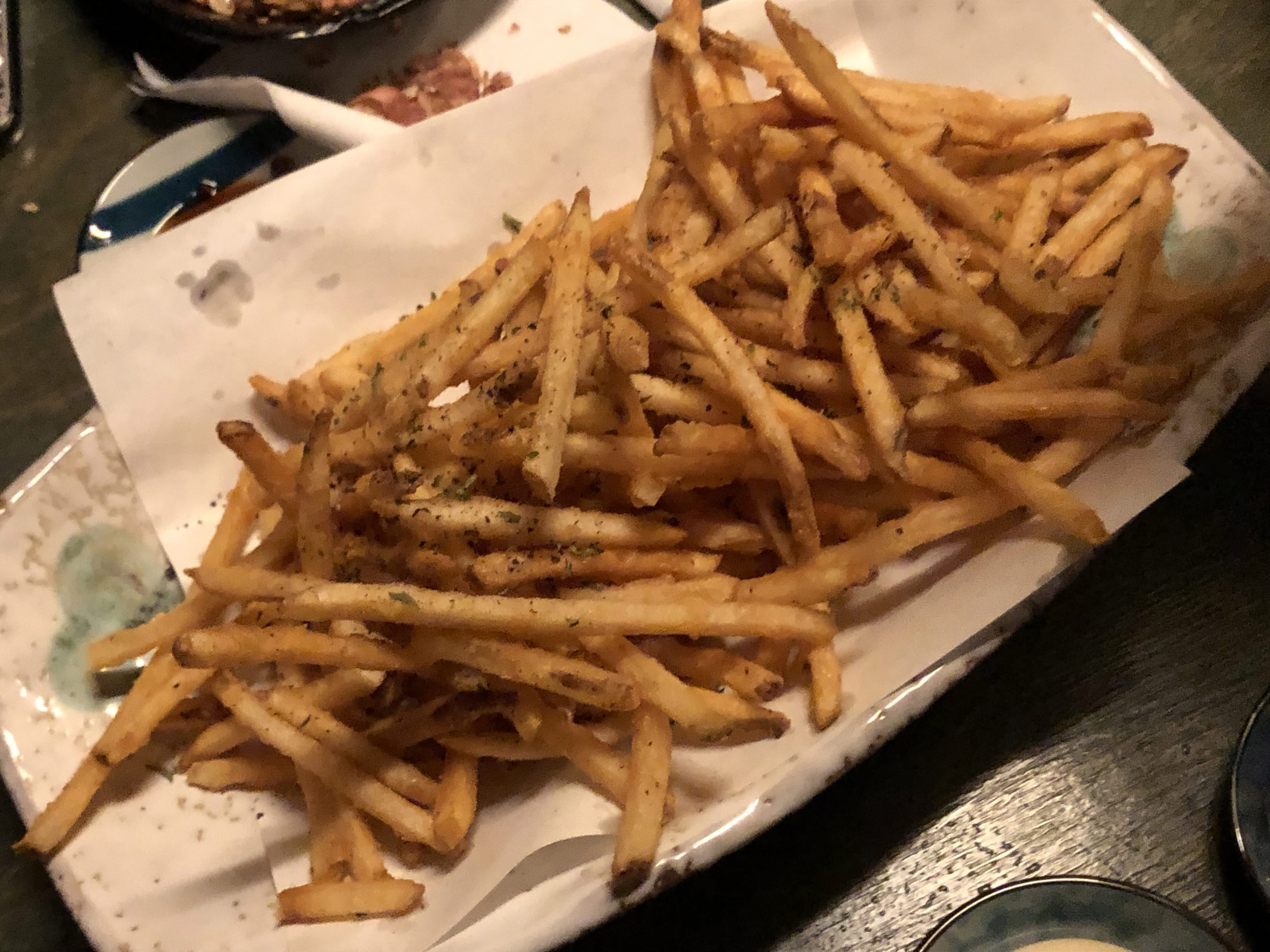 안주로는 감자튀김을 주문해서 먹었어요. 감자튀김이 얇고 바삭해서 더 맛있게 먹을 수 있었어요. 기호에 맞게 찍어먹을 수 있도록 마요네즈와 케찹도 함께 주셨어요.