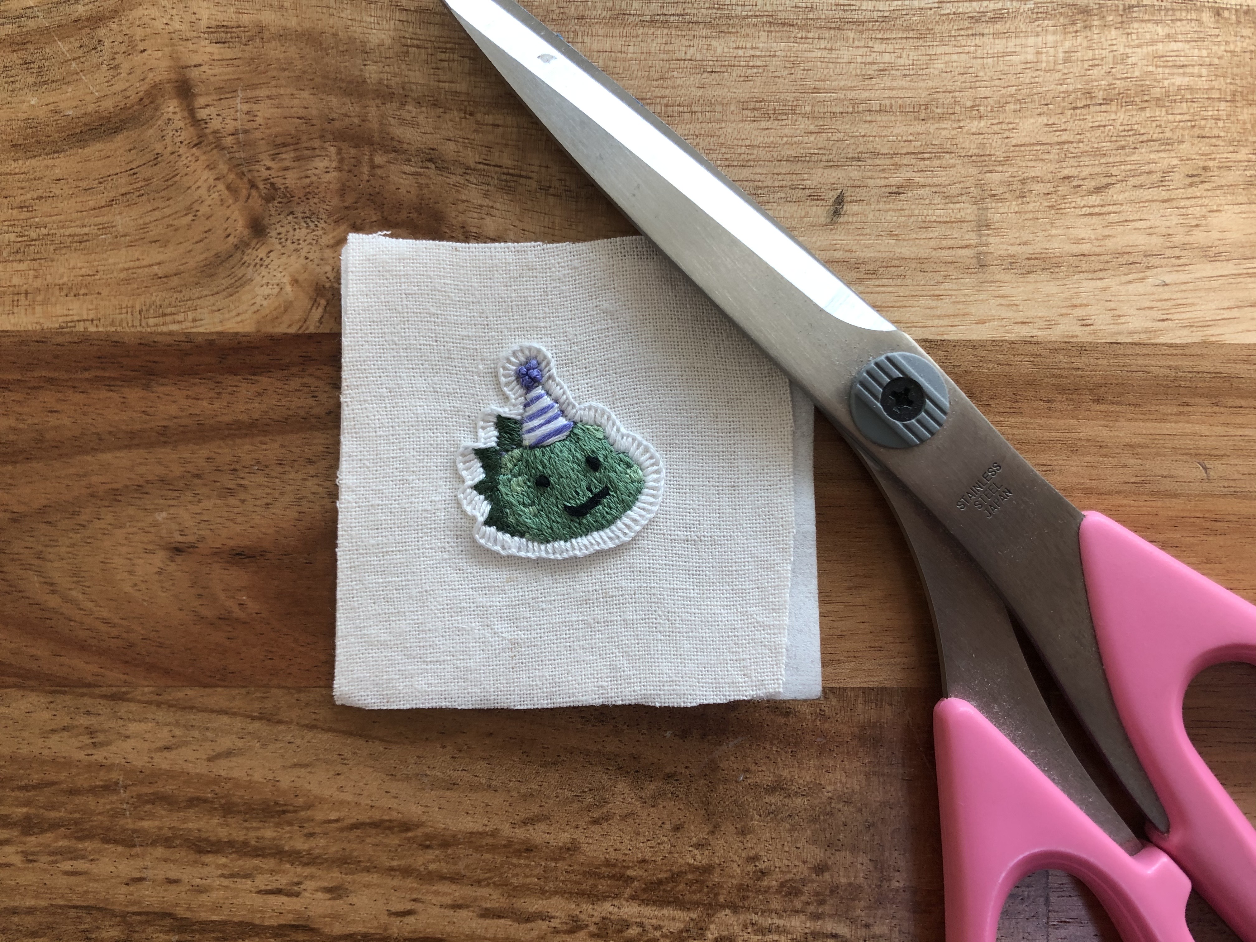 버튼홀스티치로 마무리 한 용용이의 천을 적당한 크기로 잘라주고, 접착 펠트지도 그에 맞게 잘라 준비합니다.