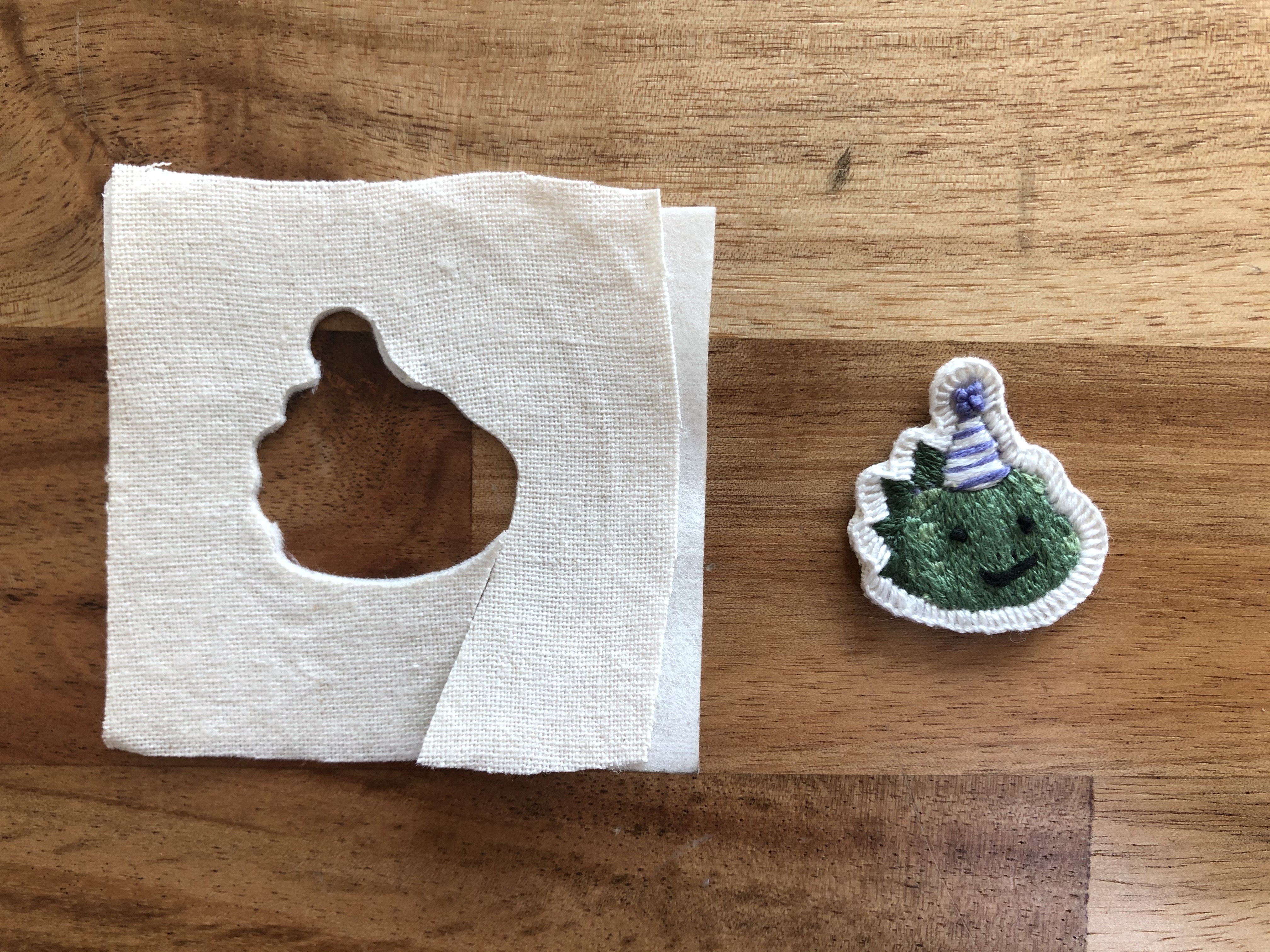 완성한 용용이의 작업물을 브로치로 만들기 위해서는 테두리를 버튼홀 스티치로 마무리 해주는 것이 좋아요. 버튼홀스티치로 주변을 둘러주면 더욱 깔끔하고 완성도 있는 브로치를 만들 수 있거든요.