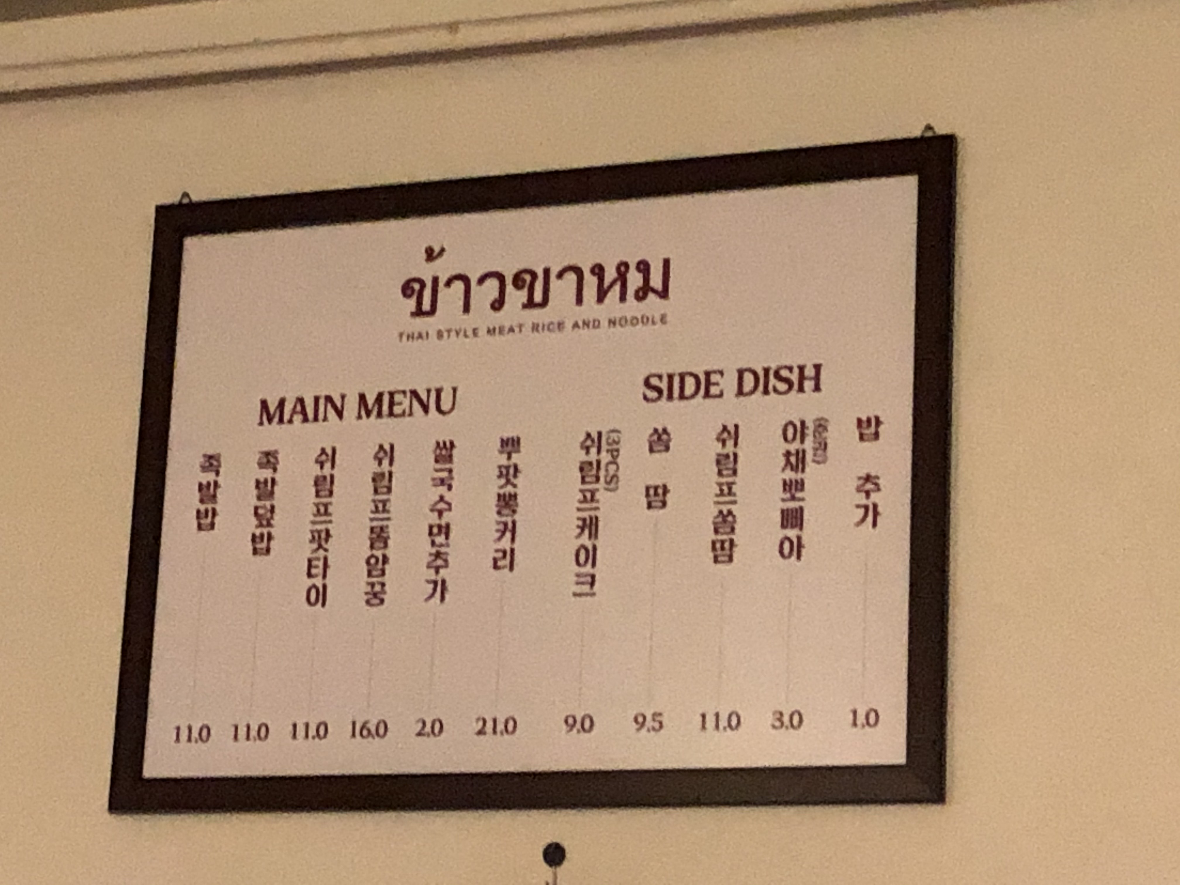 태국어로 '족발덮밥'이라는 뜻이더라고요.