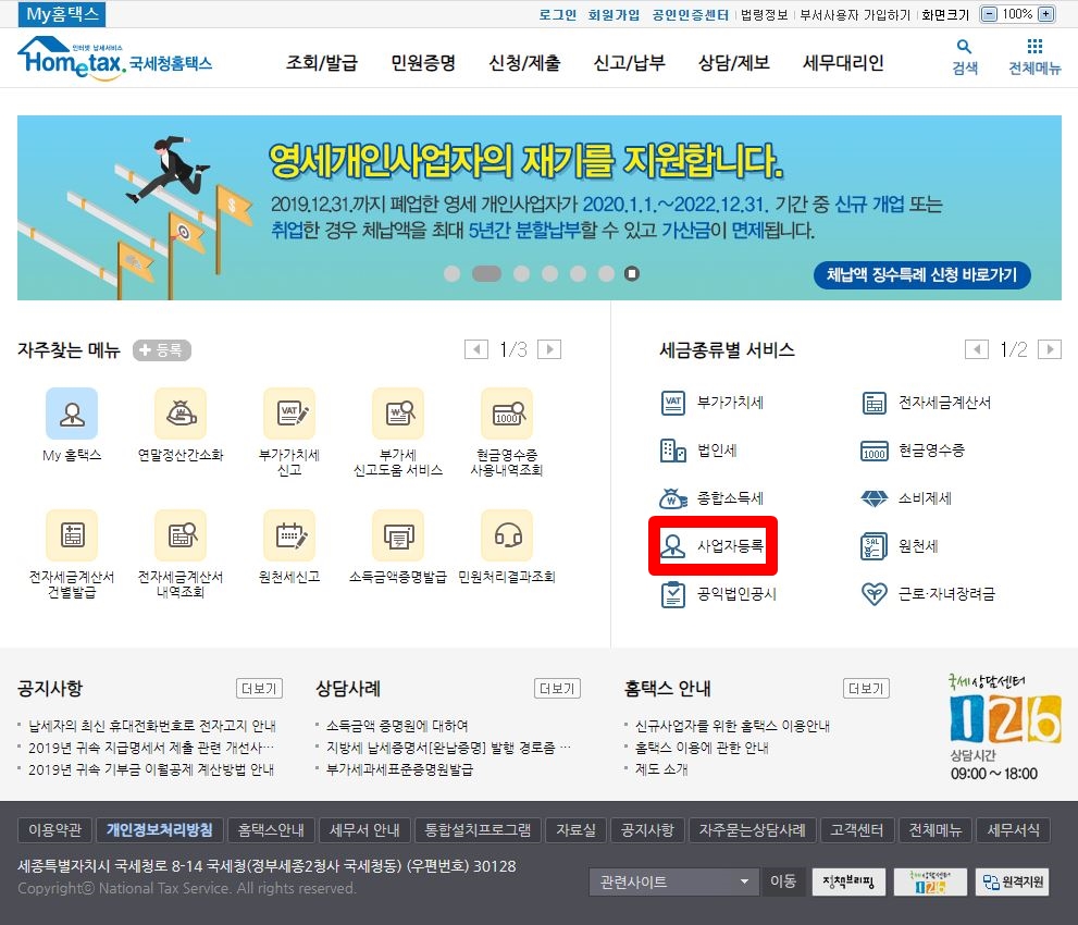 첫 번째로 사업자 등록신청