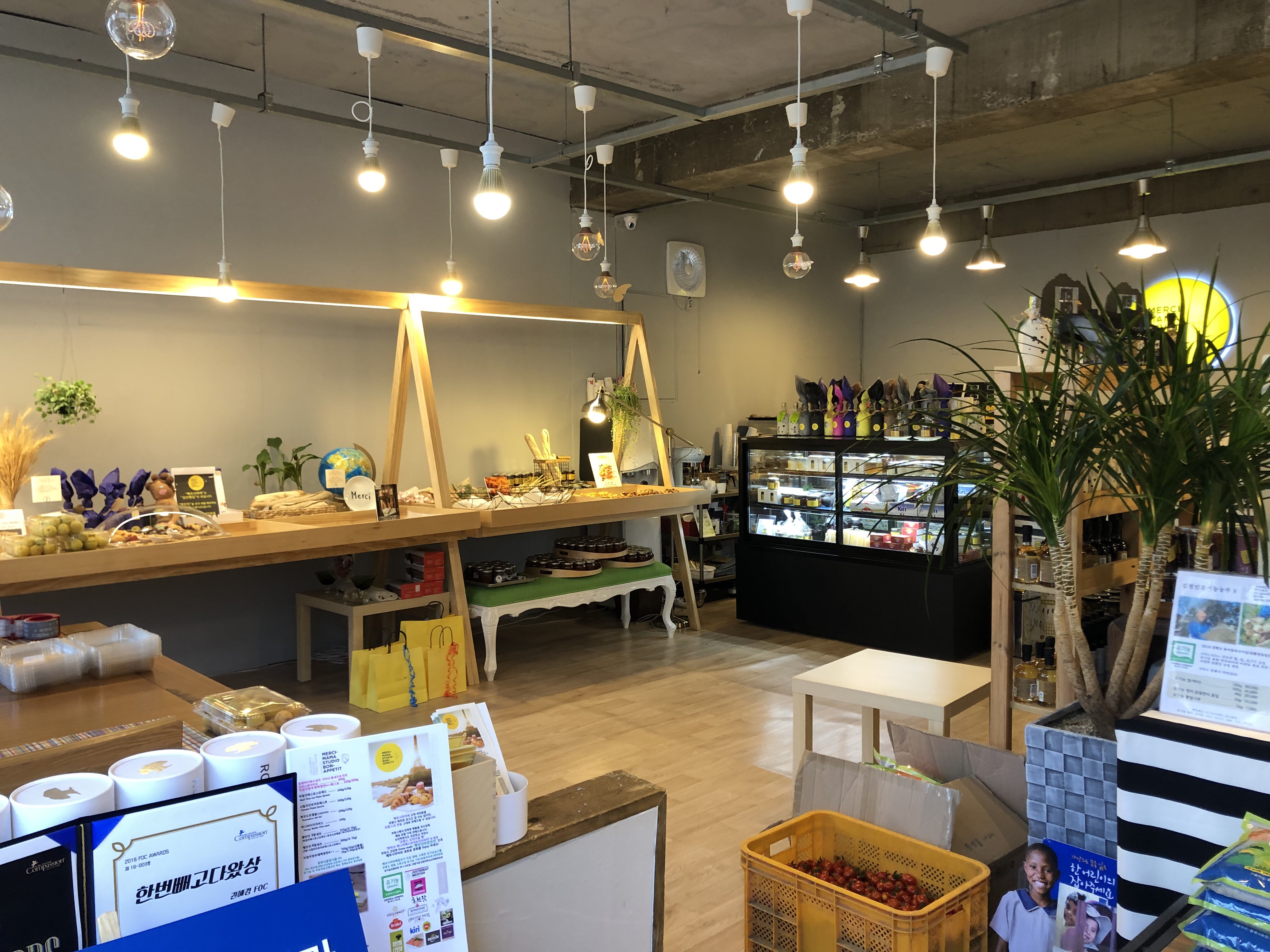 들어가면 가정집처럼 신발을 벗고 슬리퍼로 갈아 신은 뒤 들어가야 했어요. 샌들을 신고 있었어서 맨발이라 부끄러웠지만, 슬리퍼로 갈아 신고 빵집을 살펴보았습니다.