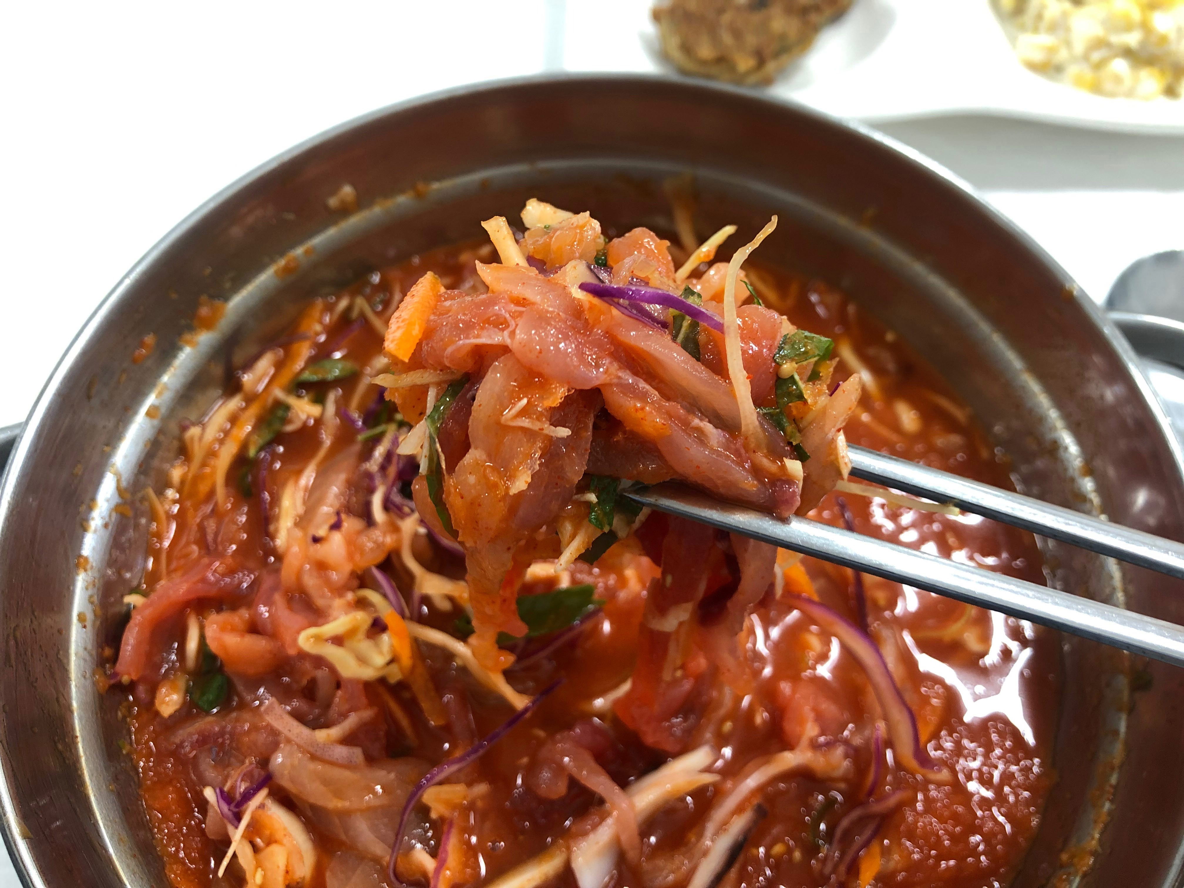소면을 다 먹은 뒤에는 밥도 말아서 먹을 수 있는데, 밥은 뜨끈한 국물에 말아 먹는 것이 일반적인 식사라는 생각이 있어서 그런지 저는 물회에 밥을 말아 먹는 것이 우유에 밥을 말아먹는 것과 같은 느낌으로 다가와서 그렇게 먹지는 않았어요. 주변에 계신 분들은 밥을 말아서 잘 드시더라고요. 소스가 워낙 맛있다보니까 국물도 남김없이 싹싹 먹을 수 있었어요. 보통 방송을 많이 탄 식당의 경우 맛도 별로 없우면서 돈을 주고 홍보를 부탁하기도 한다고 해서 믿음이 잘 안갔는데, 이곳은 확실한 맛집이었습니다.
